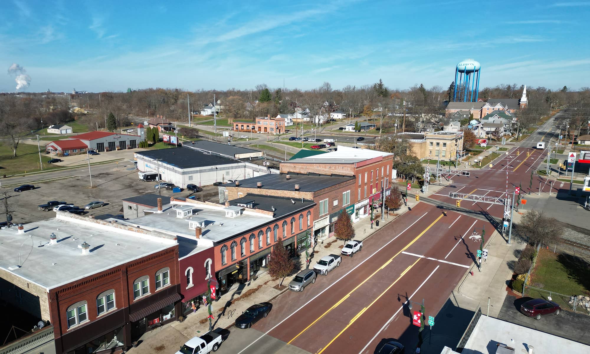 Victory Park – with its iconic waterfall shown above, was begun with a plan in the year 1919 in honor and memory of our soldiers and sailors who served in World War I. Victory Park is also the home of Albion’s “Sledding Hill,” and the Victory Park bandshell, where free music is offered many summer Sunday evenings. Learn more about the waterfall in Victory Park here: https://albionmich.net/victory-park-waterfall-albion-michigan-aerial-view/