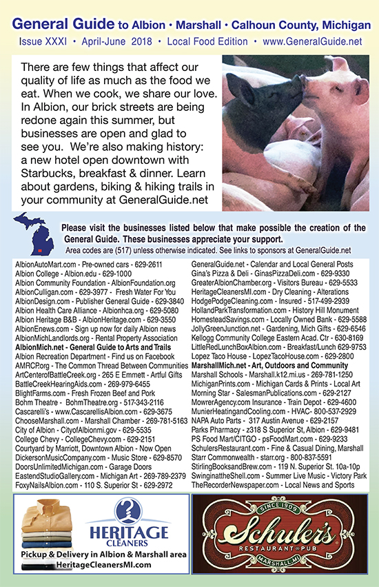 General Guide XXXI – the Local Edition for April-May-June 2018 was delivered in the Morning Star shopper newspaper to homes in Albion the weekend of March 31, 2018. T It was also delivered to homes in Marshall as an insert in the Ad-Visor & Chronicle. The Guides will also available at participating businesses. The Local Food Edition of the General Guide features information about local food, connected communities, live entertainment, seasonal gardening, outdoor events such as 5K runs, bicycle rides, and more.