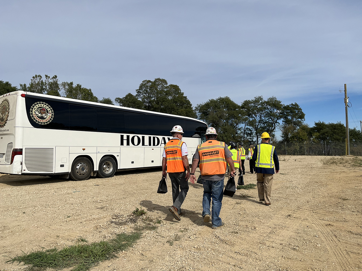 Under a white tent on Callahan Road, guests gathered for opening remarks and light music before touring the 1,400-acre site—about half the size of the City of Albion. Each guest received a thermal lunch bag and coffee thermos as a keepsake, along with a hard hat and high-visibility safety vest. According to the printed agenda, the company even hosted a dinner afterward at Grand River Brewery in Jackson for partners and visitors. The main speakers were presented with the ceremonial scissors, tucked neatly into long carrying cases shaped like tennis racket bags.
