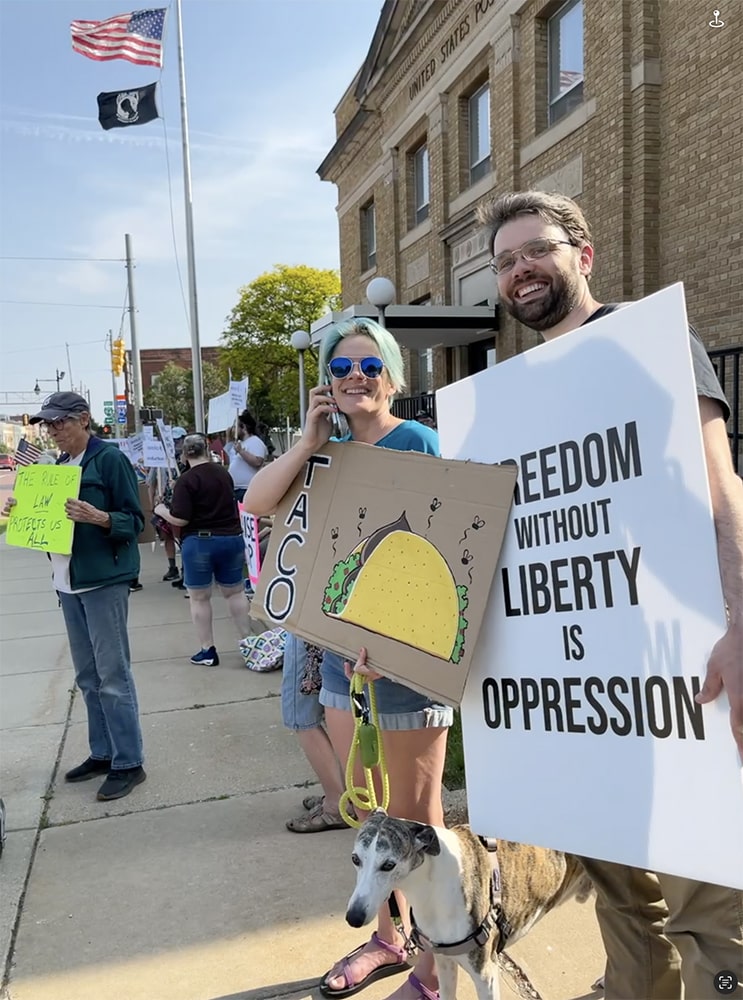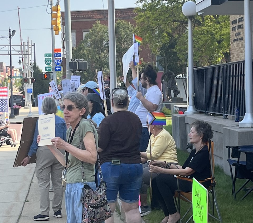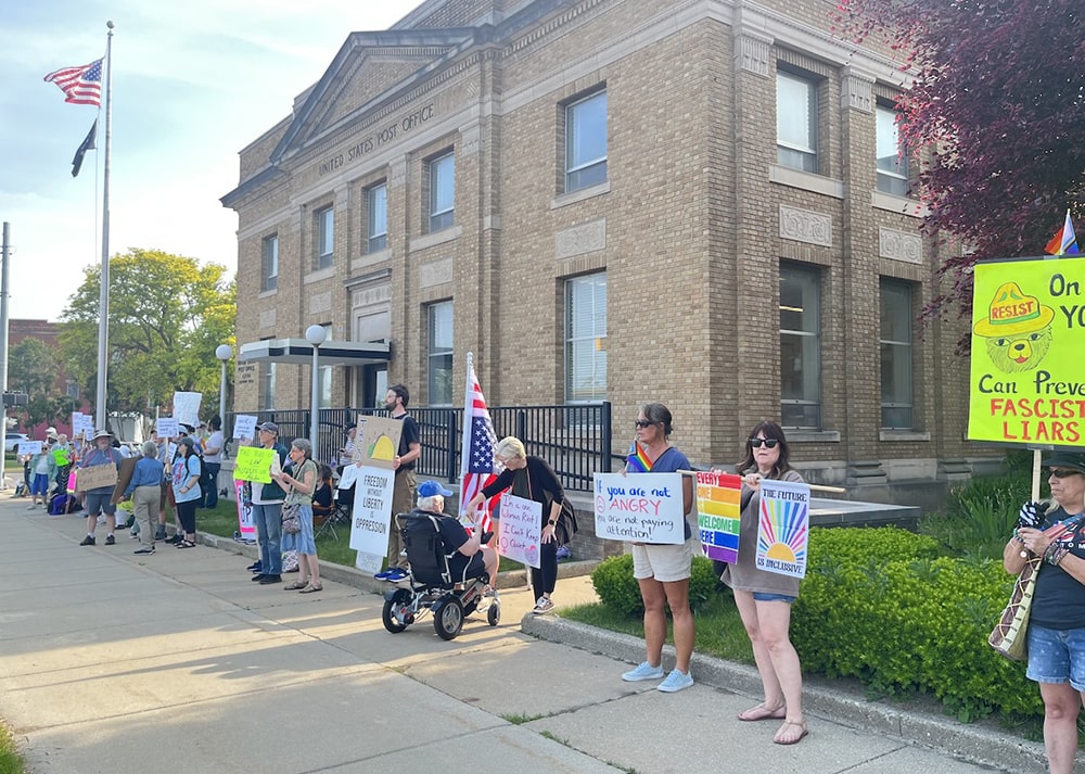 Participants came from Albion, Jackson, Marshall, and Olivet. A local special education paraprofessional, who wore a shirt with “Good Trouble” on it, said: “There is a right way to do this. This group is here to peacefully protest.”