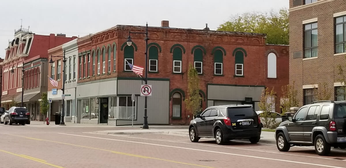 How this building looks in 2018 and the location. Formerly in this location was Bette’s Beauty Nook. It is in the same block as Park’s Drug Store and the Secretary of State. On the right, in the foreground, is a corner of the Courtyard by Marriott Hotel.