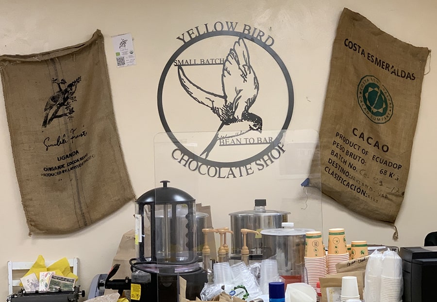 You can visit Yellow Bird Chocolate on their website: https://www.yellowbirdchocolateshop.com/